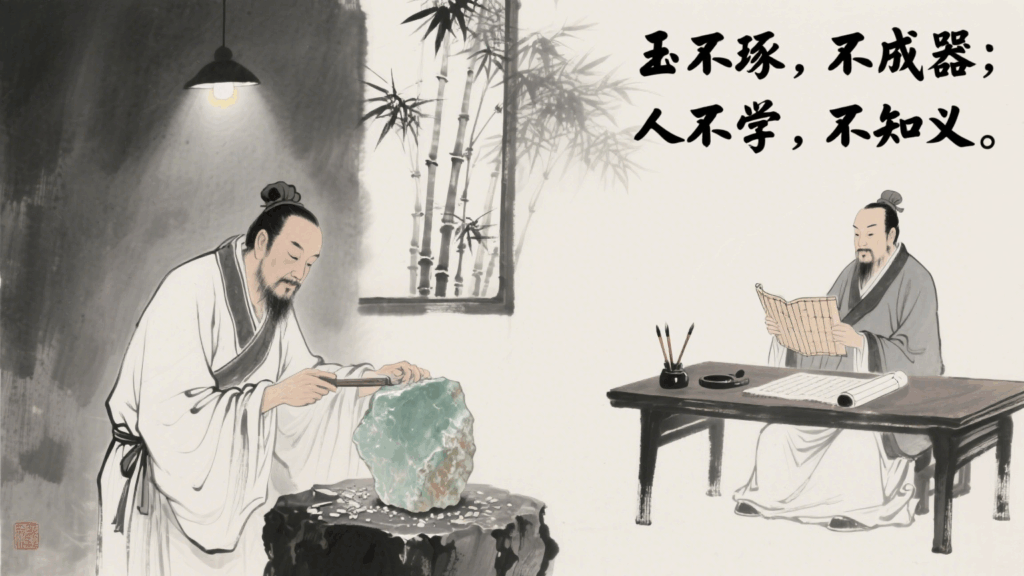 结合教育心理学中的“可塑性理论”“刻意练习理论”与“社会文化理论”,我们可以更深入地理解“玉不琢不成器;人不学,不知义”的本质——人的心理发展并非固定不变的“宿命”,而是通过外部教育干预(“琢”)与个体主动学习(“学”),实现认知、情感、行为等多维度的动态塑造。
