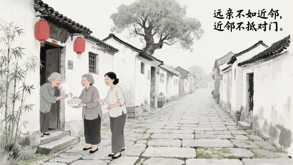 2. 对远亲:在“情感交流”中加入“实际支持”。例如,知道远亲的孩子在找工作,而自己恰好有相关资源,可以主动帮忙推荐;远亲所在的城市遇到自然灾害时,主动询问是否需要物资支持。这种“力所能及的实际帮助”,能让远亲感受到“血缘关系的价值”,避免情感关系因“无法提供支持”而逐渐淡化。 当我们尝试将这些策略应用于实际生活时,可能会发现:近邻不再是“熟悉的陌生人”,而是能在紧急时刻提供支持的“身边人”;远亲也不再是“过年才见面的客套对象”,而是能在情感上给予慰藉的“牵挂之人”。这种多元、平衡的人际网络,既能满足我们的日常需求,也能为我们提供持久的情感寄托,让生活更有安全感和幸福感。 从心理学视角看,“远亲不如近邻,近邻不抵对门”并非否定血缘关系的重要性,而是揭示了“空间距离”对人际联结的客观影响。它提醒我们:人际关系的维护需要“因地制宜”——对近邻,要主动创造互动机会,让“距离优势”转化为“情感优势”;对远亲,要通过高质量互动弥补距离缺陷,让“血缘纽带”保持温度。最终,无论是近邻还是远亲,只要用心维护,都能成为我们生活中重要的支持力量,让我们在人际网络中既“有依靠”,又“有温暖”。